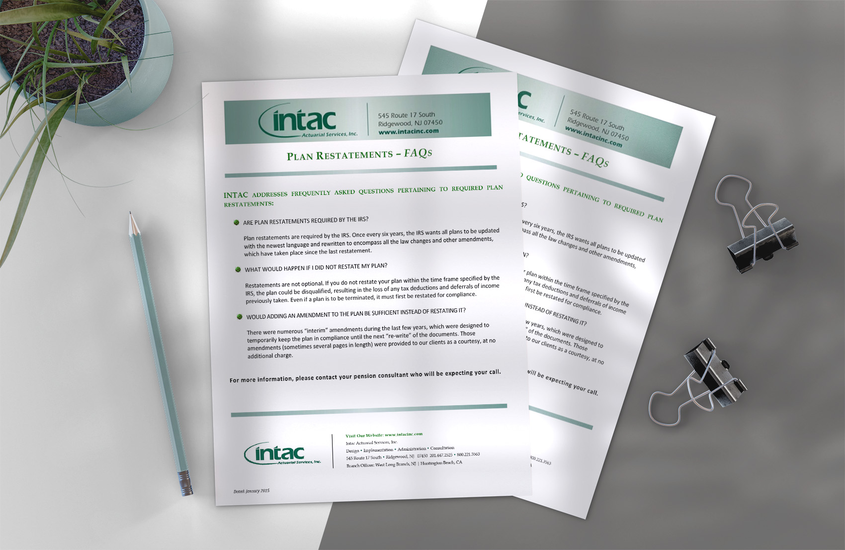 INTAC ADDRESSES FREQUENTLY ASKED QUESTIONS PERTAINING TO REQUIRED PLAN RESTATEMENTS